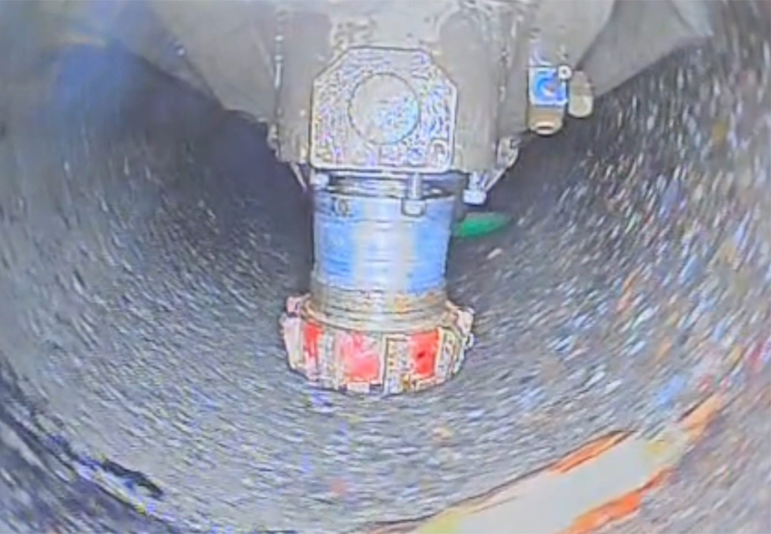 Anstatt aufwendige Ausgrabungen durchzuführen, setzte das erfahrene KATEC-Team auf einen Fräsroboter der Pipetronics GmbH & Co. KG. Der PI.TRON ermöglicht es, das beschädigte Sattelstück präzise und ohne Beschädigung des verbleibenden Rohrsystems zu entfernen. Nachdem der Zulauf im Hauptkanal freigelegt war, konnte das defekte Sattelstück mit hoher Genauigkeit aus dem Kanal gefräst werden. Das grabenlose Verfahren spart nicht nur Zeit, sondern vermeidet auch unnötige Eingriffe in das umliegende System.